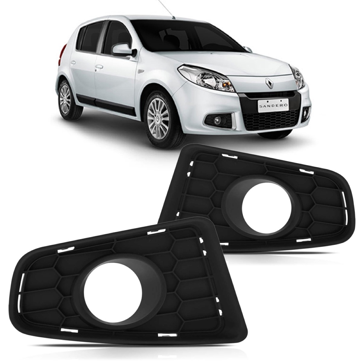 A GRADE MOLDURA MILHA RENAULT SANDERO 2012 2013 2014 é feita em plástico de alta resistência. Garante um acabamento perfeito do parachoque e proteção ao farol de milha.