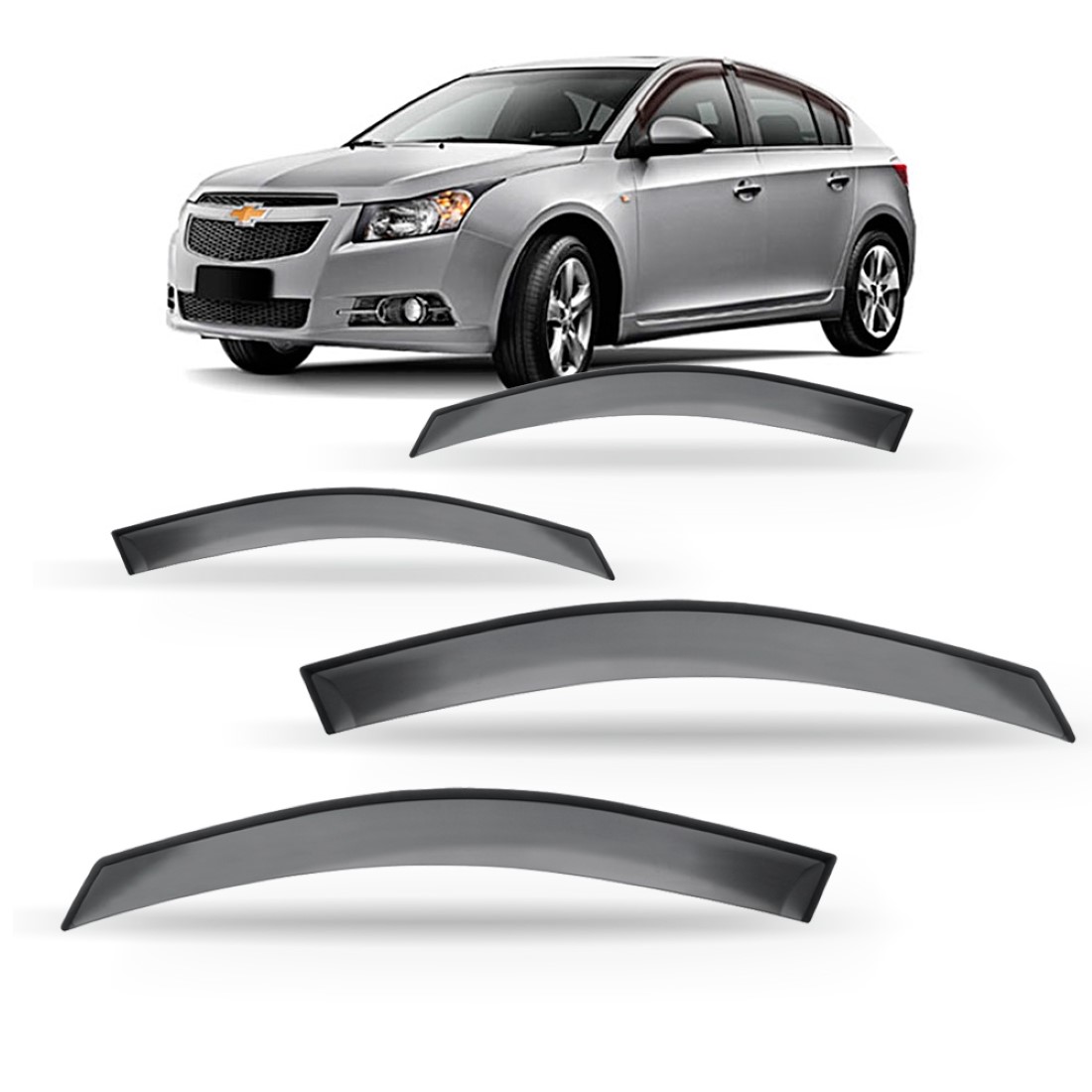 A CALHA CHUVA CRUZE HATCH 2012 À 2016 4 PORTAS vai além de um produto Decorativo, com ótima funcionalidade, permite transitar com os vidros entre abertos em dias chuvosos, criando um fluxo de ar no interior do veículo evitando que os vidros fiquem embaçados.