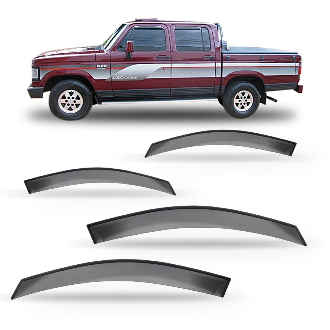 A CALHA CHUVA D-20 1986 À 1996 CABINE DUPLA 4 PORTAS vai além de um produto Decorativo, com ótima funcionalidade, permite transitar com os vidros entre abertos em dias chuvosos, criando um fluxo de ar no interior do veículo evitando que os vidros fiquem embaçados.