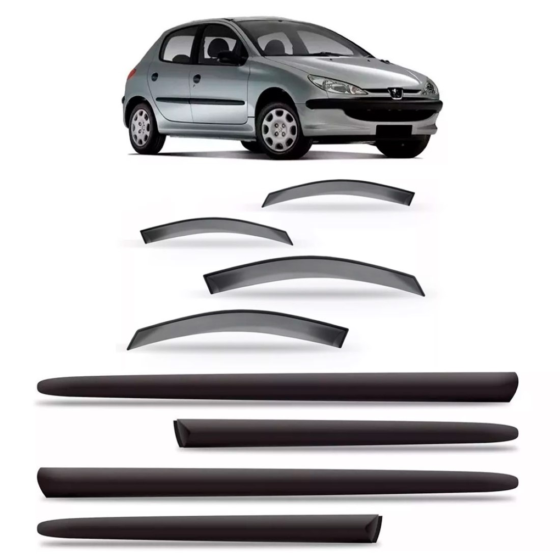 KIT CALHA CHUVA PEUGEOT 206 2000 A 2010 + FRISO LATERAL