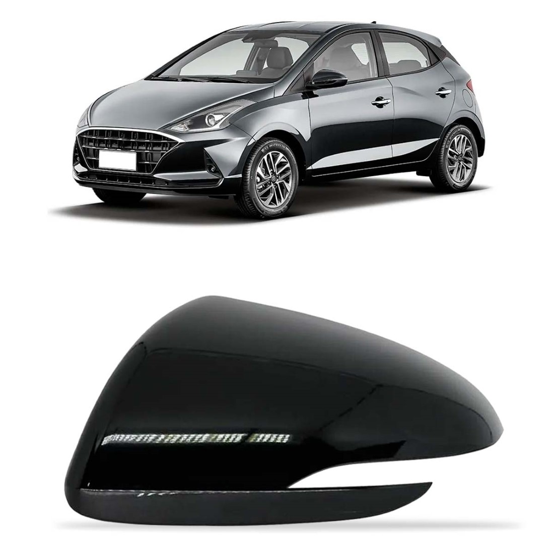 Capa Retrovisor HB20 2020 A 2022 C/ Furo Pisca Preta