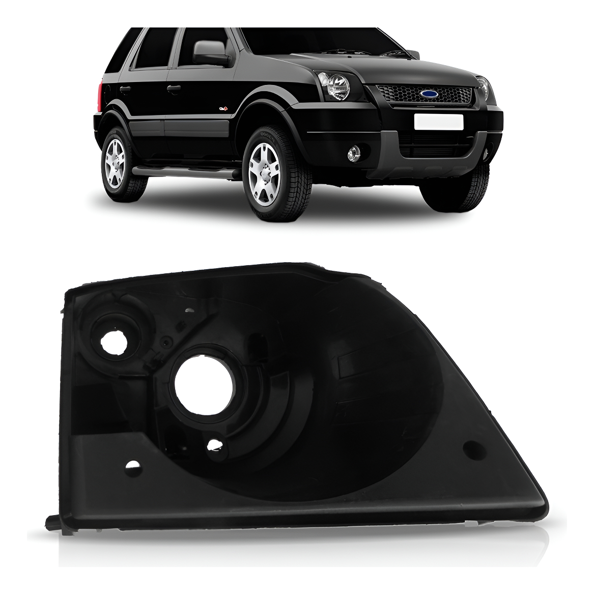 A CARCAÇA DE FAROL FORD ECOSPORT 2003 2004 2005 2006 2007 é fabricado em plástico resistente sendo um componente imprescindível para comportar a parte de iluminação de seu veículo.