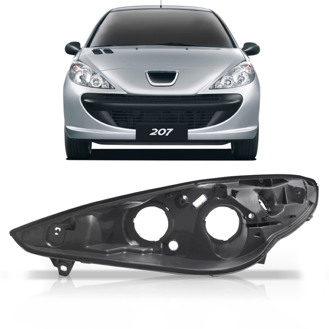 A CARCAÇA DE FAROL PEUGEOT 207 2009 2010 2011 2012 2013 é fabricado em plástico resistente sendo um componente imprescindível para comportar a parte de iluminação de seu veículo.