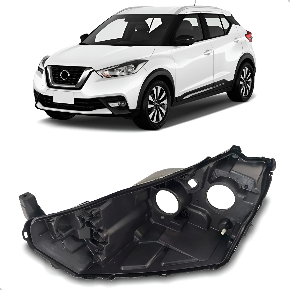 Carcaça Farol Dianteiro Kicks 2017 A 2021 C/ Regulador Lado Esquerdo