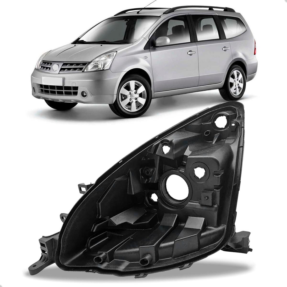 Carcaça Farol Dianteiro Livina 2009 A 2014 Com Regulador