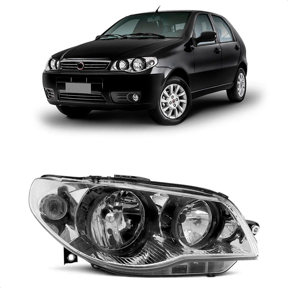 Farol Cromado Palio Celebration Aro Negro 2004 A 2013 Zoião Lado Direito