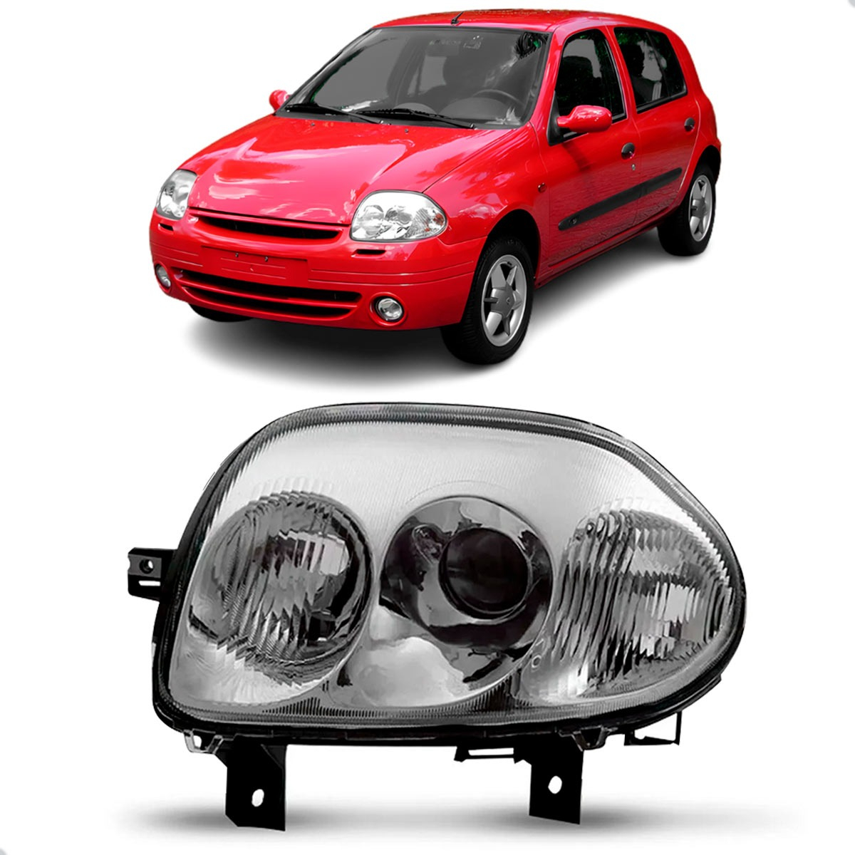 Farol Elétrico Clio 1999 A 2002 Foco Duplo Cromado Sem Motor