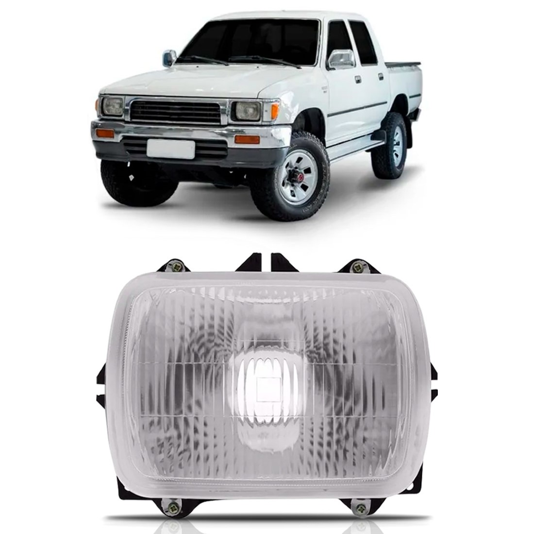 Farol de Milha Auxiliar Hilux L200 Quadrado 1990 1991 1992 1993 1994 1995 1996 1997 1998 1999 2000 2001 Com Suporte