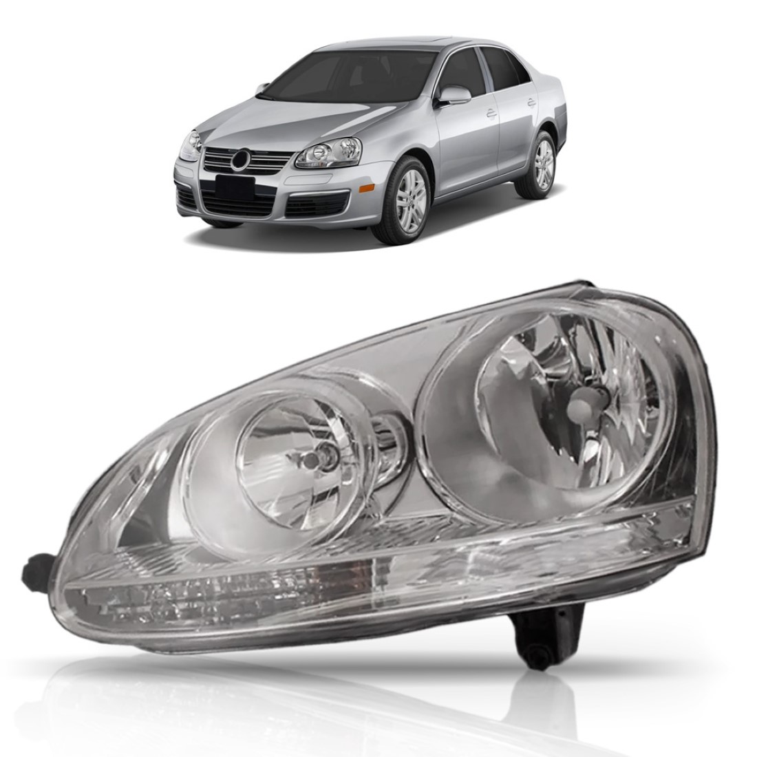 Farol Jetta 2005 2006 2007 2008 2009 2010 Cromado 1ª Linha Esquerdo/motorista