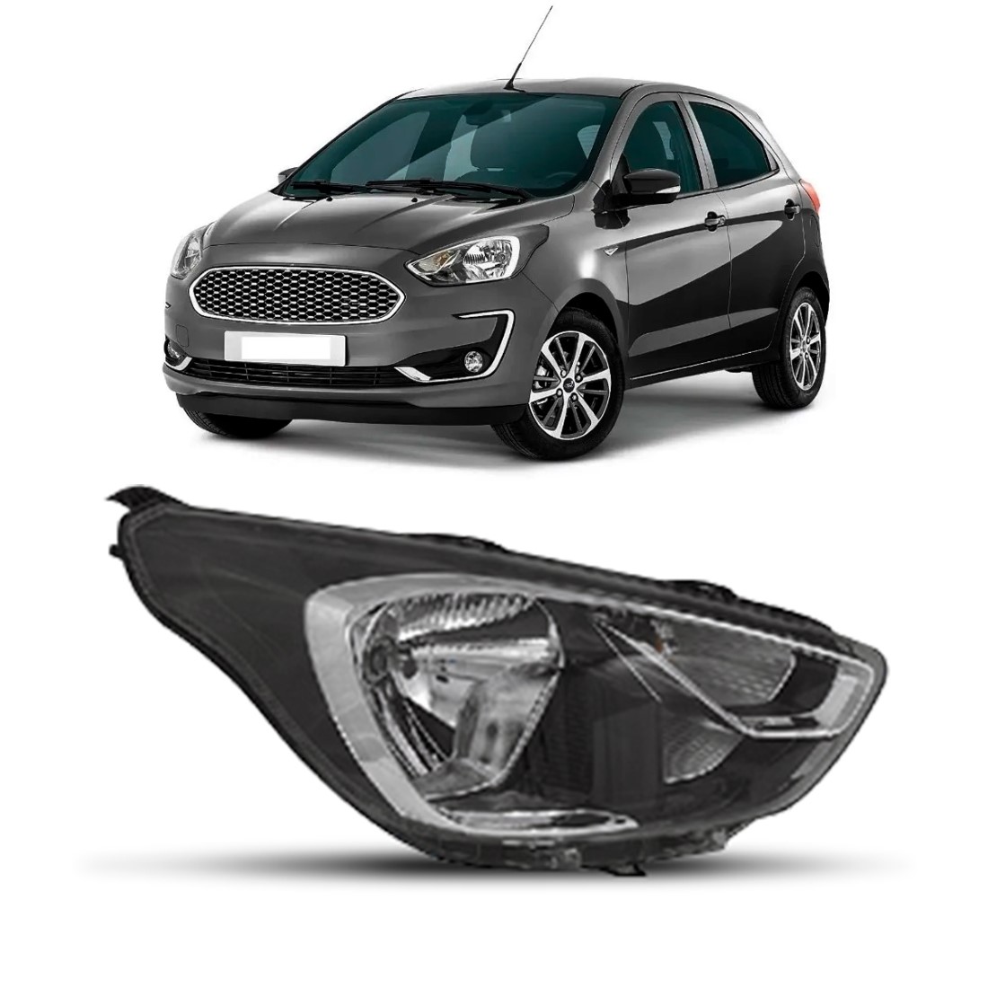 Farol Ka 19 2020 21 22 Mascara Negra Friso Cromado 1ª Linha – Direito/passageiro