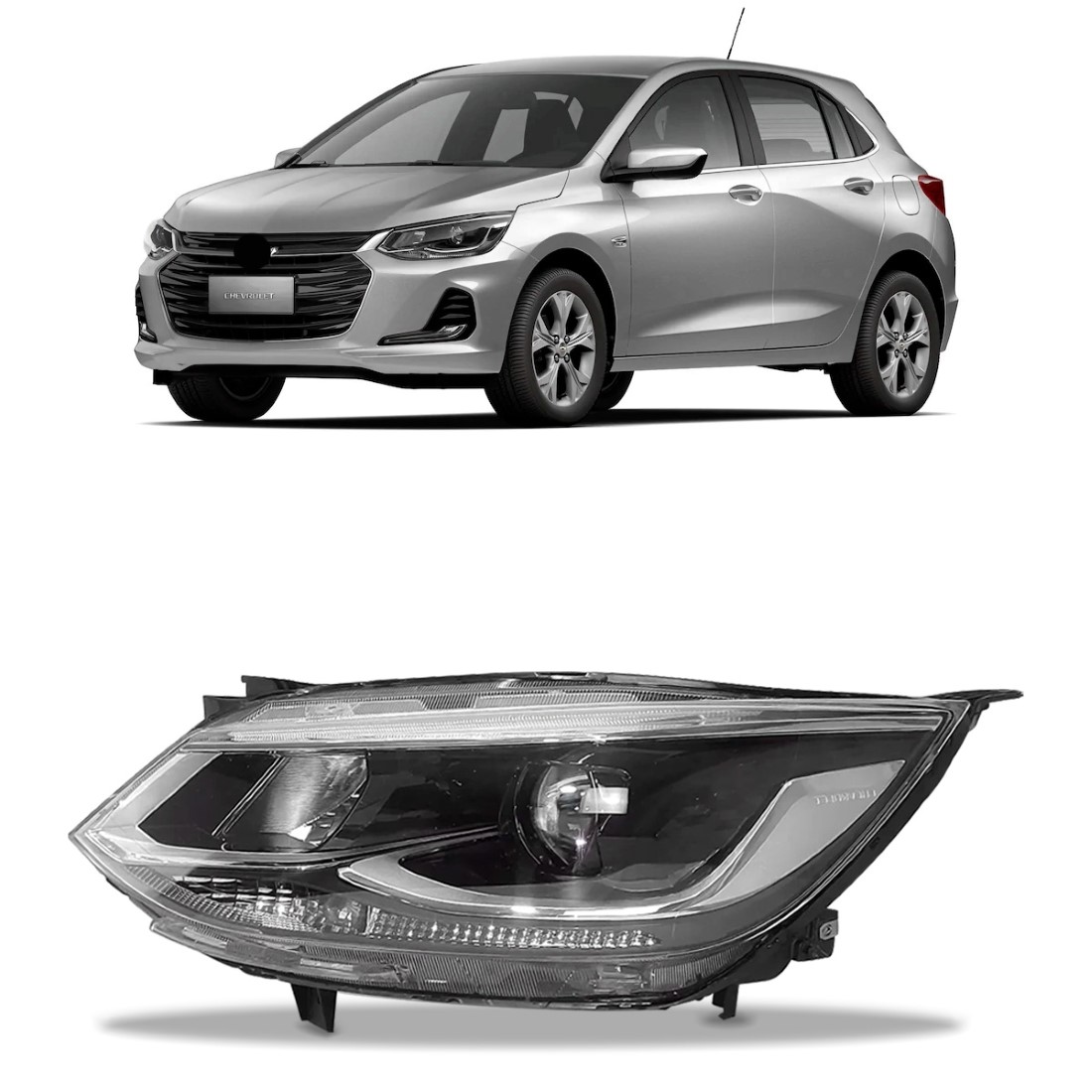 Farol Onix 2020 A 2024 Elétrico Cromado C/ Projetor 1ª Linha – Esquerdo/motorista
