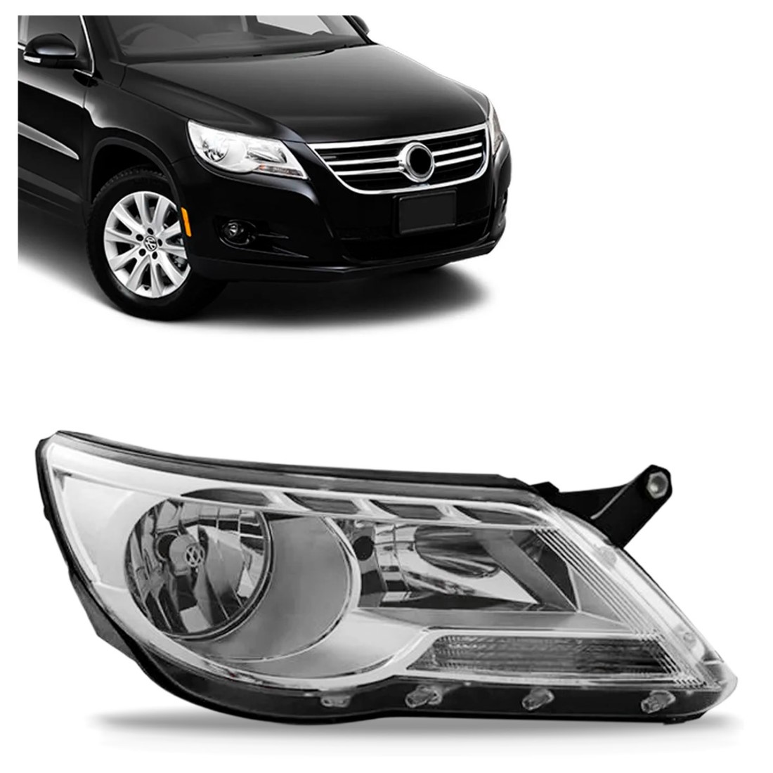 Farol Para Volkswagen Tiguan 2008 A 2011 Elétrico Lente Lisa Lado Direito