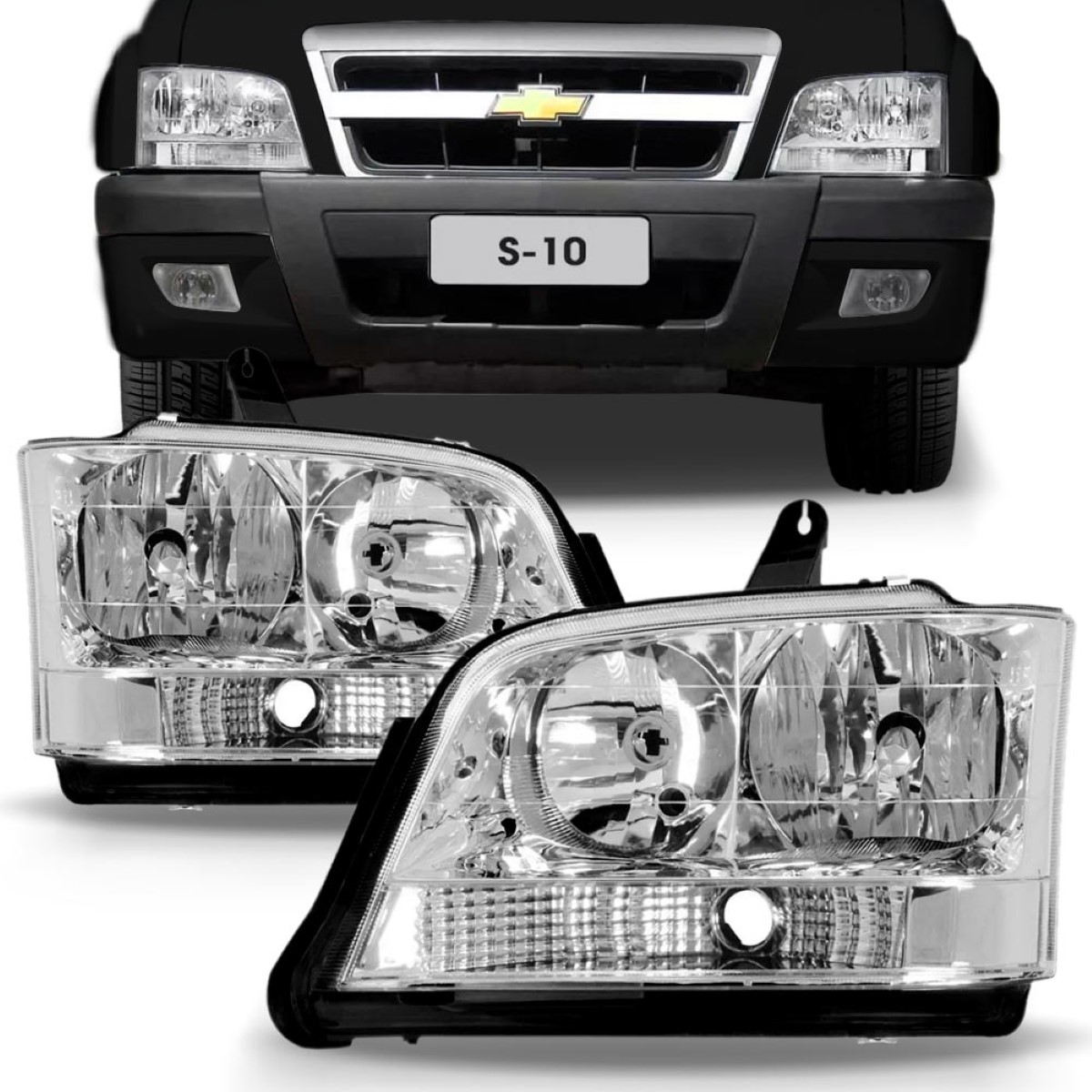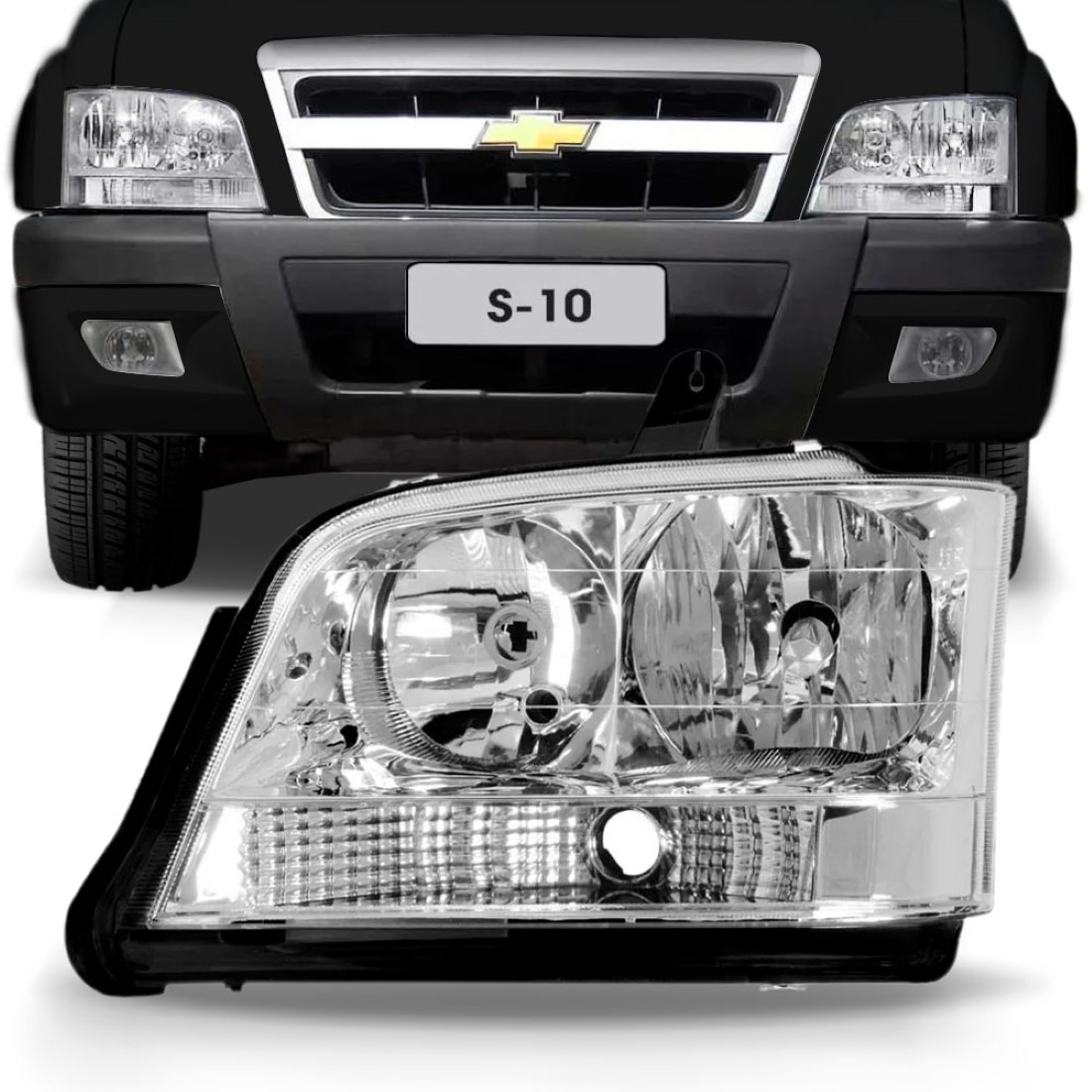 Farol S10 Blazer 01 02 2003 2004 2005 06/11 Cristal 1ª Linha Esquerdo/motorista