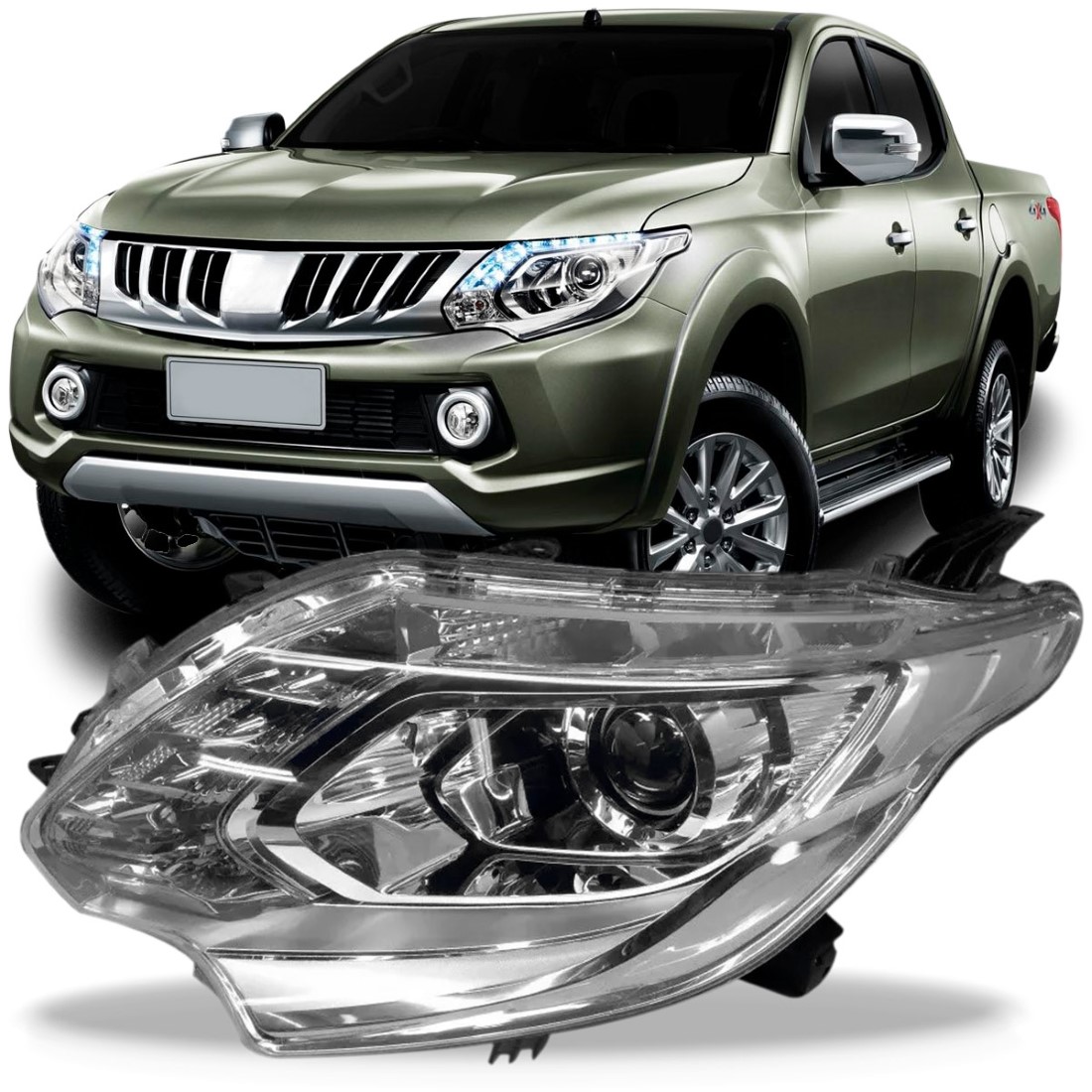 Farol Triton 16 A 18 Cromado C/led Sinaleira Azul 1ª Linha Esquerdo/motorista