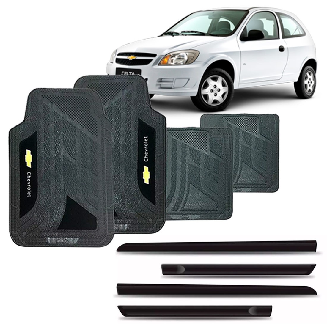 TAPETE UNIVERSAL PVC C/ CARPETE PRETO CHEVROLET