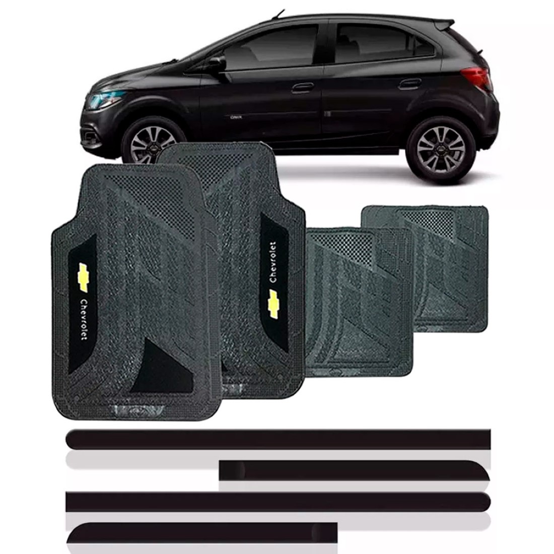 TAPETE UNIVERSAL PVC C/ CARPETE PRETO CHEVROLET