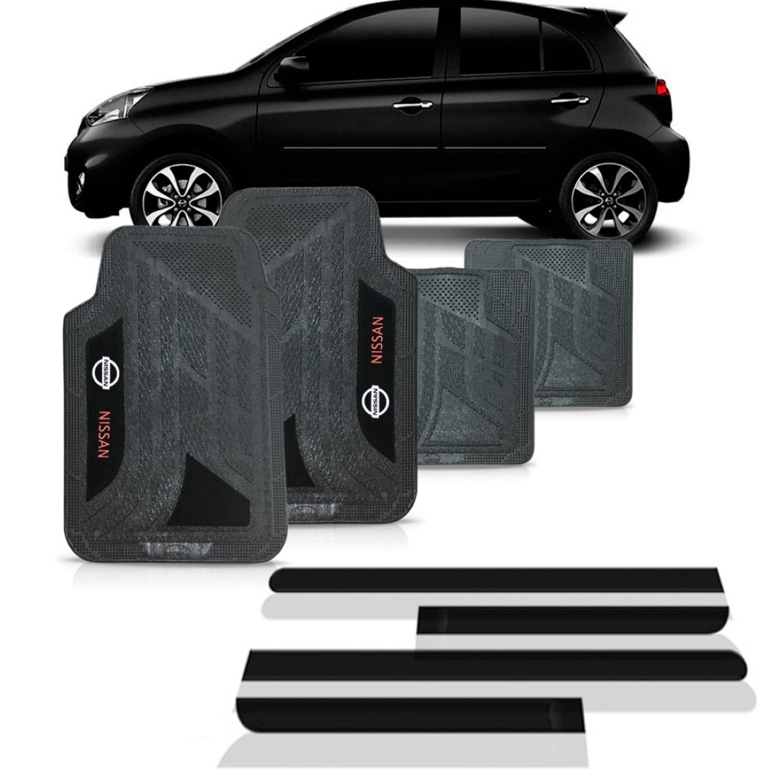 Frisos Laterais Para Nissan March (todos) + Jogo Tapetes Preto
