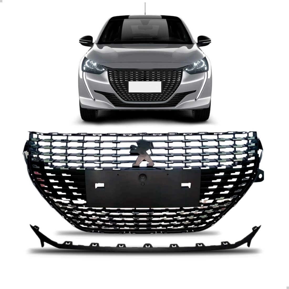 Grade Com Friso Para Peugeot 208 Style 2021 A 2024 1a Linha Preto