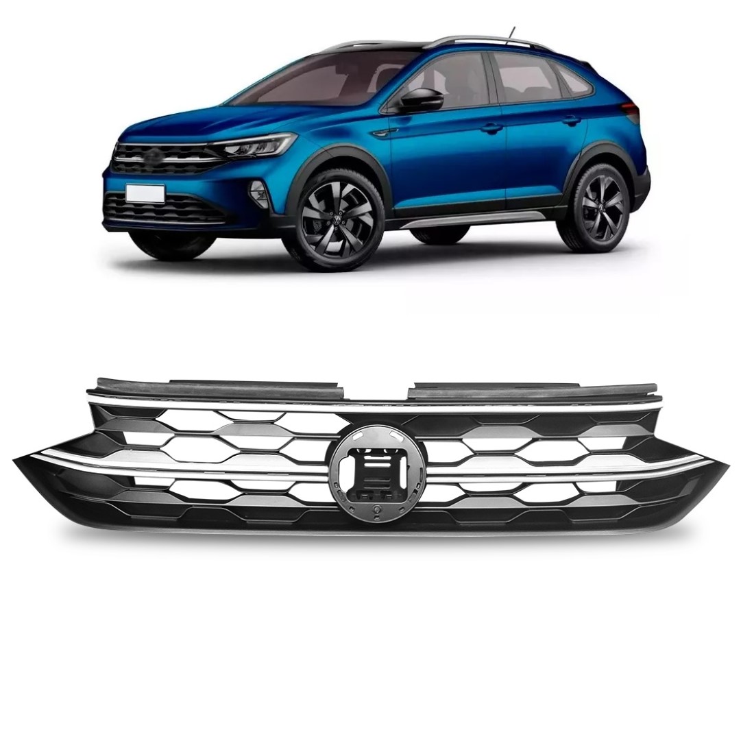 Grade Radiador Nivus Preta 2021 A 2023 Com Frisos Cinza Claro