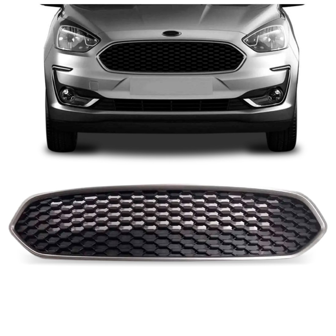 Grade Radiador Ka Hatch 2019 2020 2021 2022 Preta Com Moldura Prata