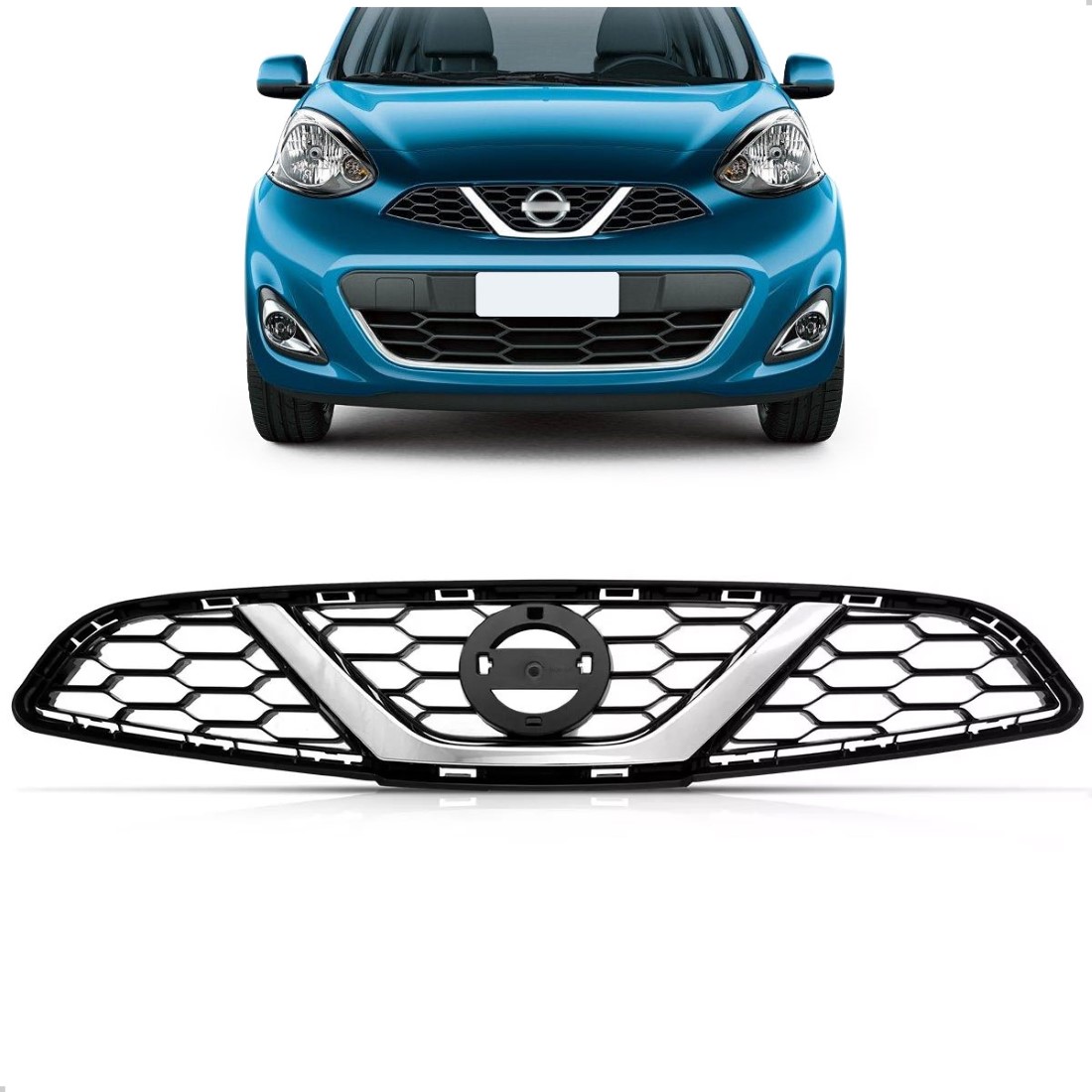 Grade para Nissan March 2015 2016 2017 2018 Completa Preta Com Friso Cromado