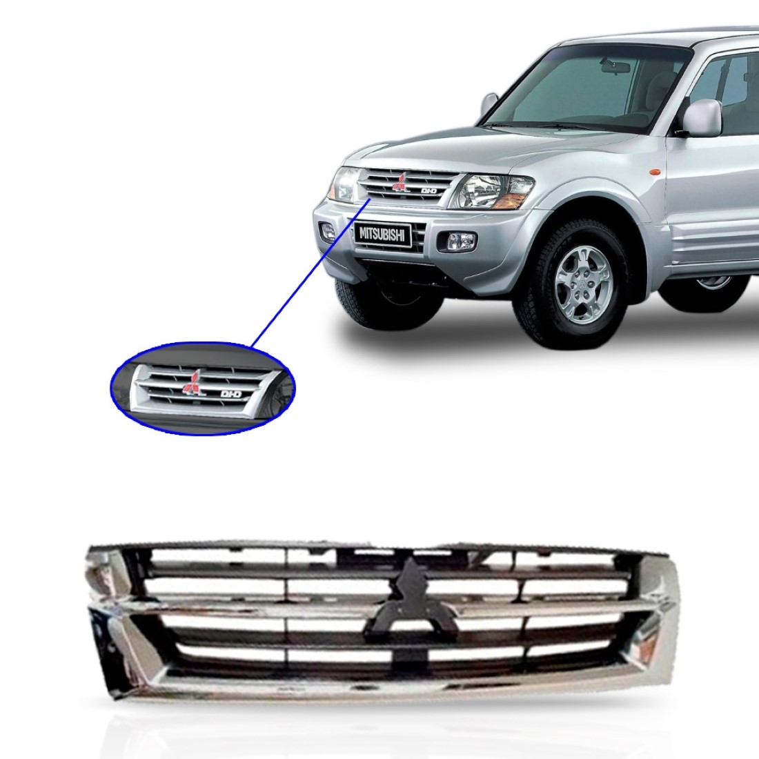 A GRADE MITSUBISHI PAJERO FULL 2000 2001 2002 FRISO CROMADO é feita em plástico de alta resistência e garante um visual ainda mais bonito e esportivo para seu carro e mantem a originalidade do Veículo.