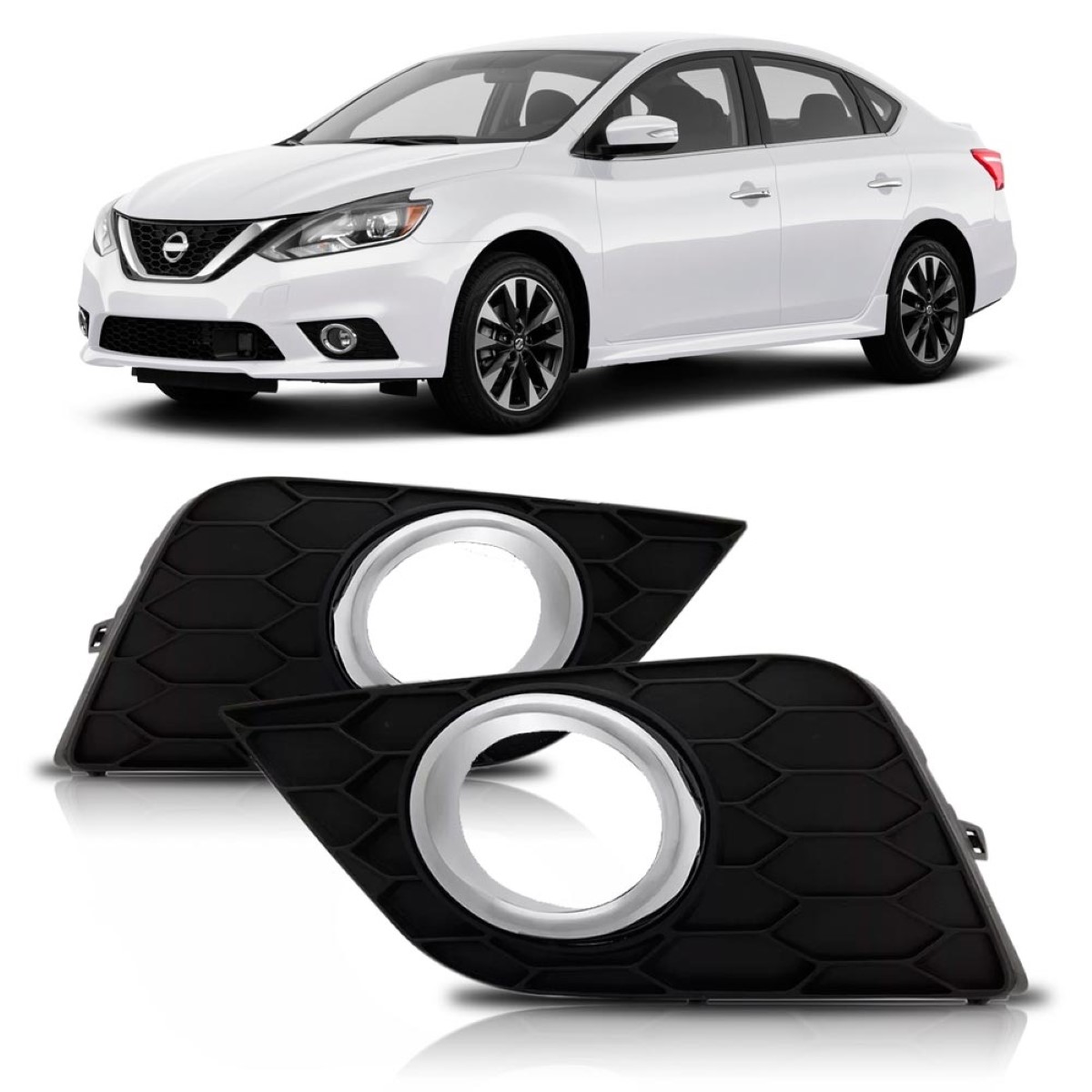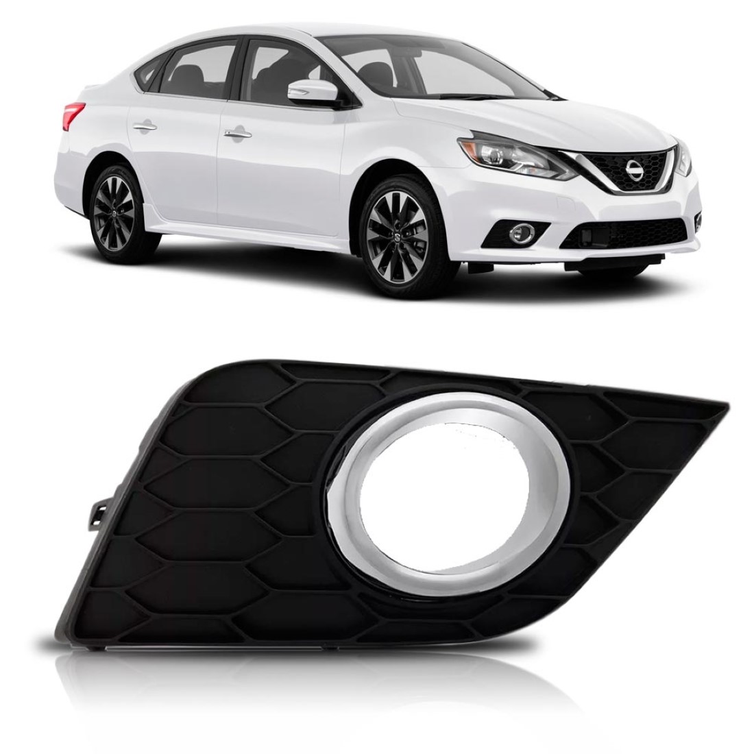 Grade Parachoque Sentra 2017 2018 Com Furo Aro Cromado Lado Direito
