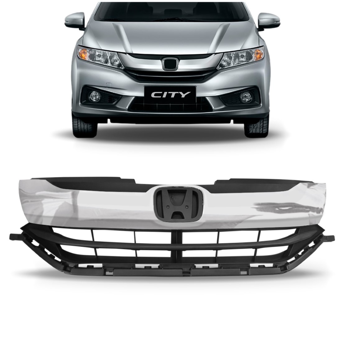 Grade Radiador Para Honda City 2016 A 2017 Com Friso Cromado Preto