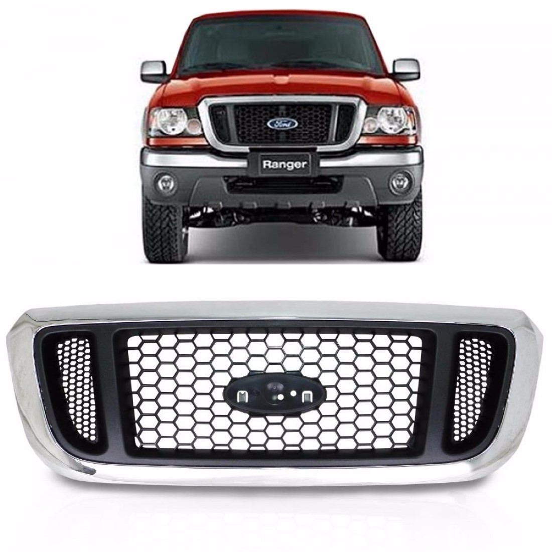 A GRADE FORD RANGER 2005 2006 2007 2008 2009 CROMADA COLMEIA é feita em plástico de alta resistência e garante um visual ainda mais bonito para seu carro mantendo a originalidade do Veículo. Aproveite para trocar sua grade danificada ou em mau estado.
