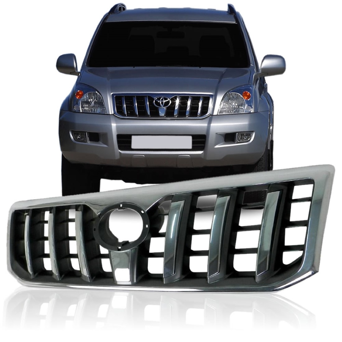 A GRADE DIANTEIRA TOYOTA LAND CRUZE PRADO 2004 2005 2006 2007 2008 2009 é feita em plástico de alta resistência e garante um visual ainda mais bonito e esportivo para seu carro com um cromo de alta qualidade e mantendo a originalidade. De um novo visual para o seu carro com as Peças e Acessórios da São Paulo Auto Peças.
