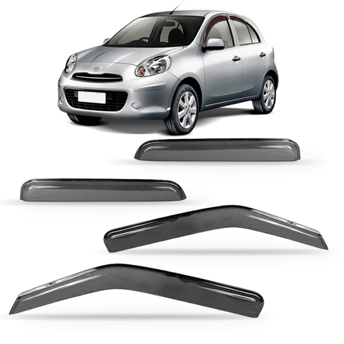A CALHA CHUVA MARCH 2011 À 2018 4 PORTAS vai além de um produto Decorativo, com ótima funcionalidade, permite transitar com os vidros entre abertos em dias chuvosos, criando um fluxo de ar no interior do veículo evitando que os vidros fiquem embaçados.