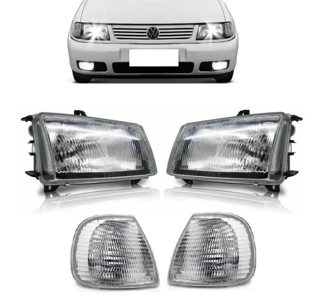 O KIT FAROL COM PISCAS VOLKSWAGEN POLO 1996 1997 1998 1999 2000 é fabricado com a mais alta tecnologia oferecida no mercado de iluminação automotiva. Com a lente extremamente resistente e um ótimo acabamento. Os faróis do carro são itens imprescindíveis para trafegar com segurança, pois proporcionam um aumento de visibilidade e auxiliam na iluminação em tempo chuvoso e nebuloso.