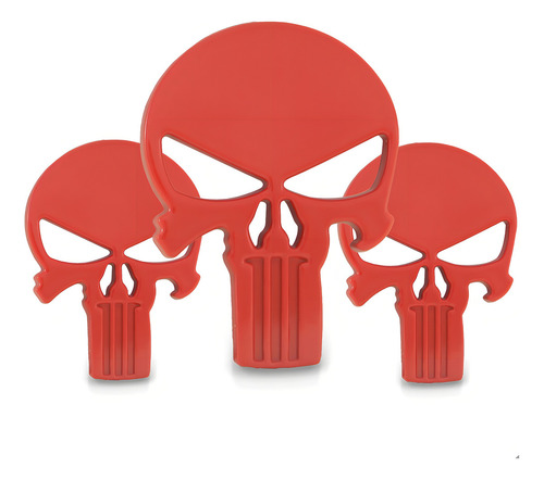 Kit 3 Emblemas Injetado Caveira Justiceiro Pequeno Vermelho