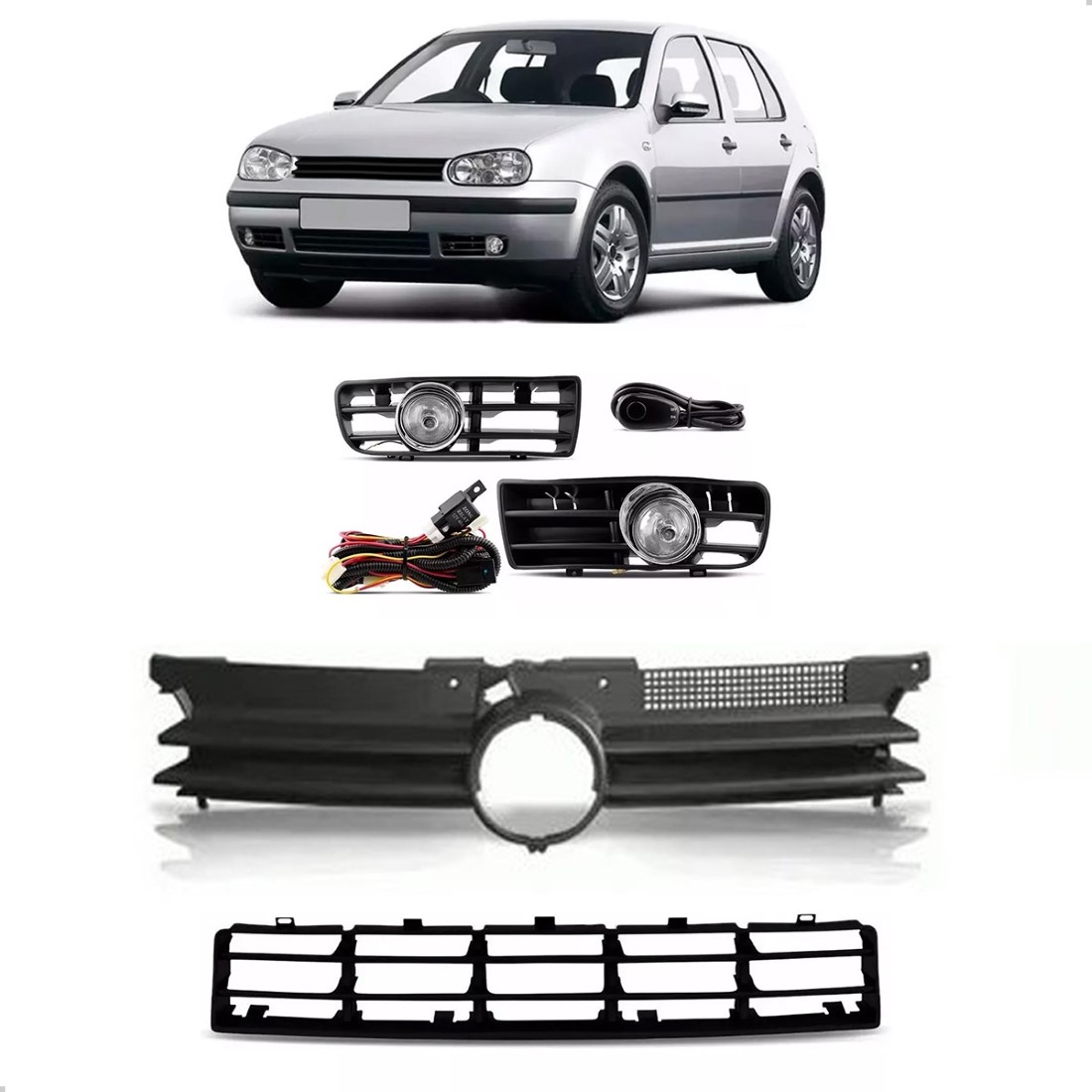 Kit Farol Milha Para Golf 1999 A 2005 Com Kit De Grades Plástico
