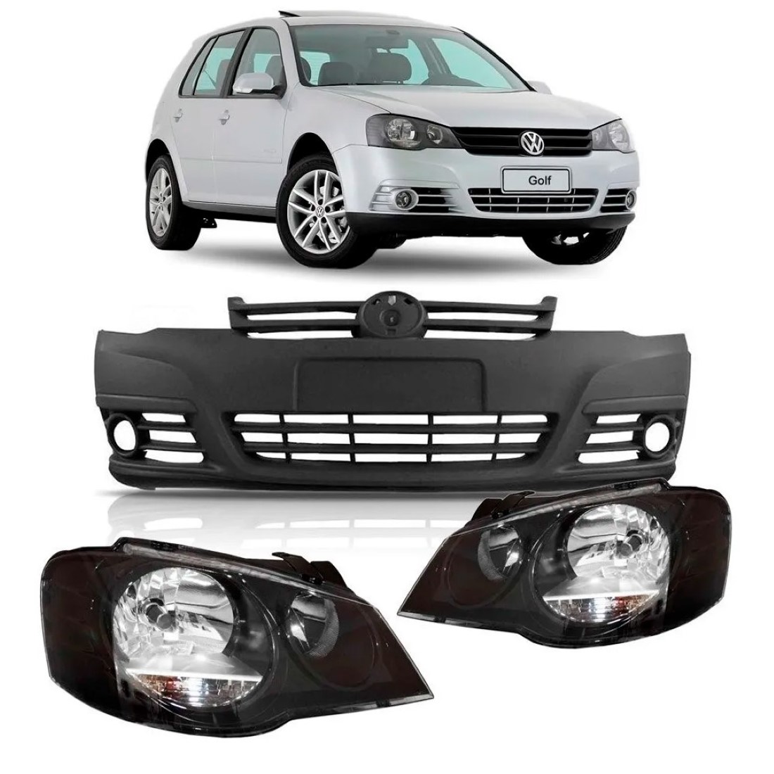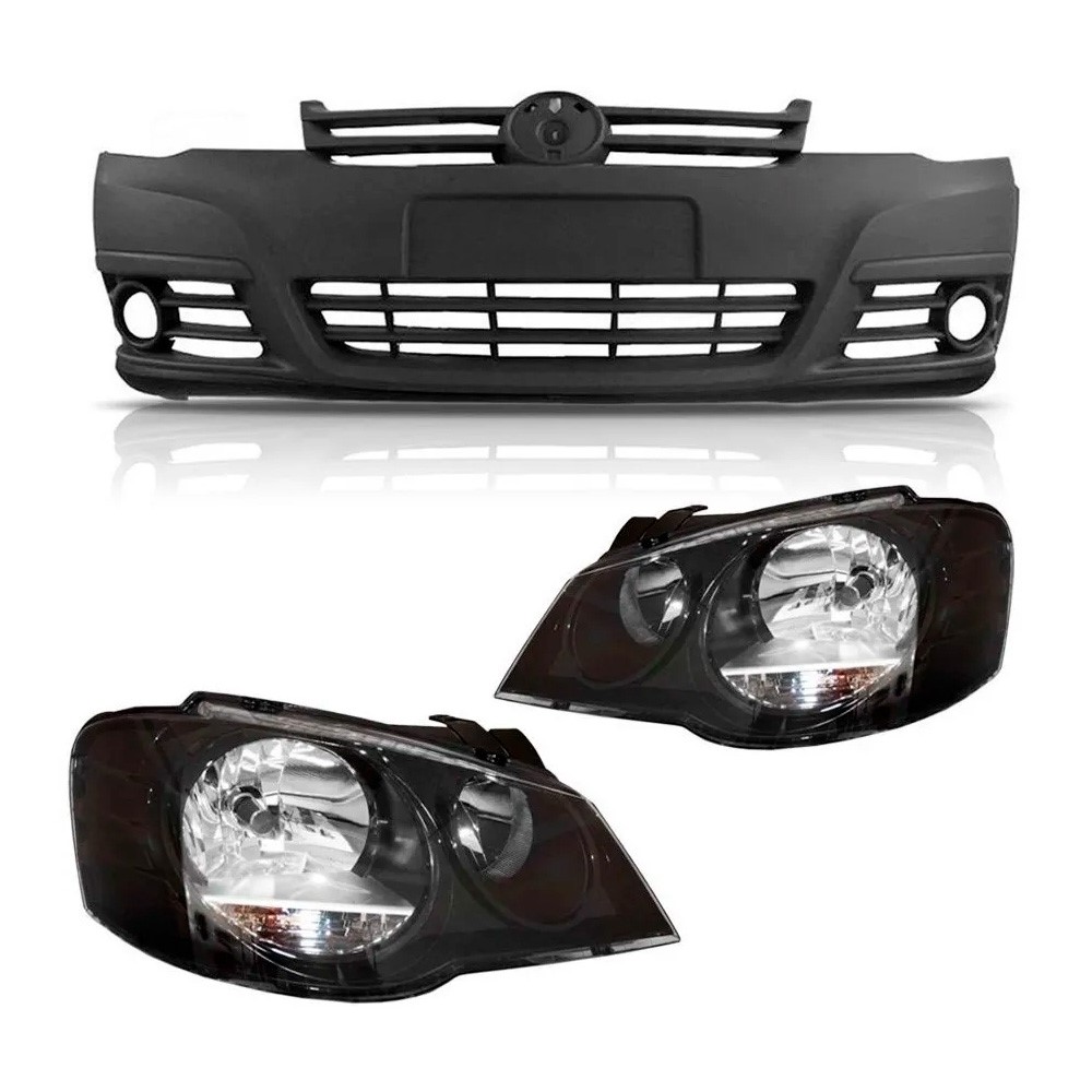 Kit Golf 2007 À 2012 Parachoque + Par Farol Máscara Negra.