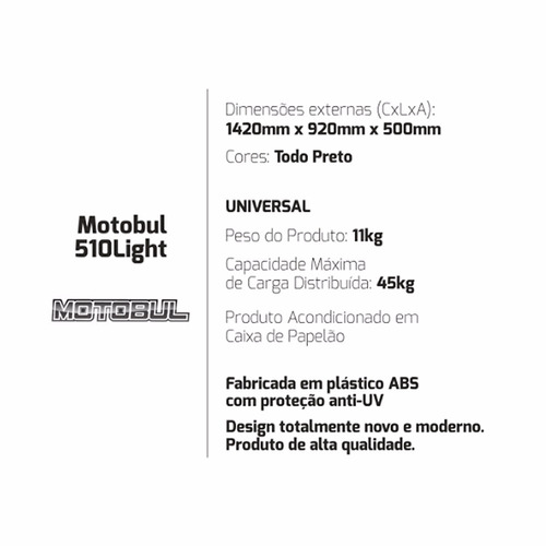 * Capacidade de Carga: 510 Litros ou até 45 kg;