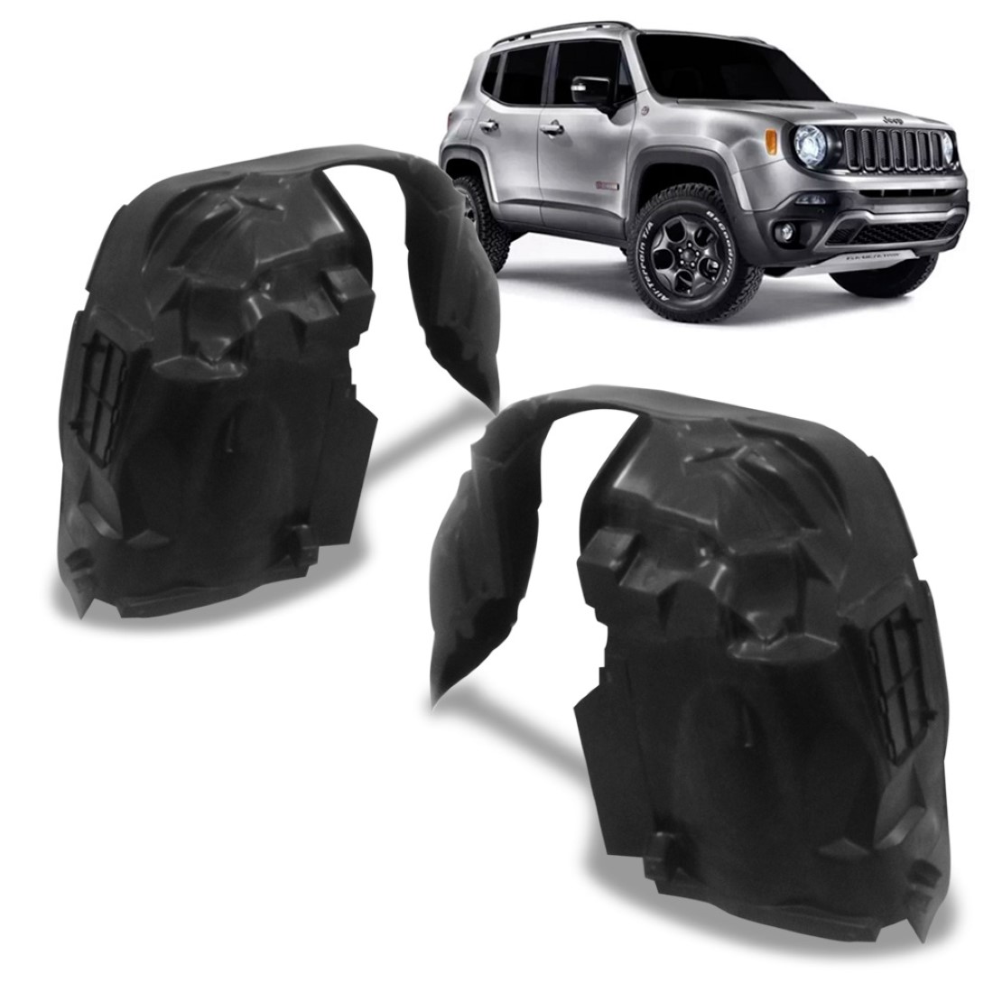 O PARABARRO DIANTEIRO JEEP RENEGADE 2015 2016 2017 INTERNO é fabricado em plástico resistente além ser um produto que favorece proteção para o motor e o paralama o parabarro é um item indispensável para a durabilidade do seu carro.