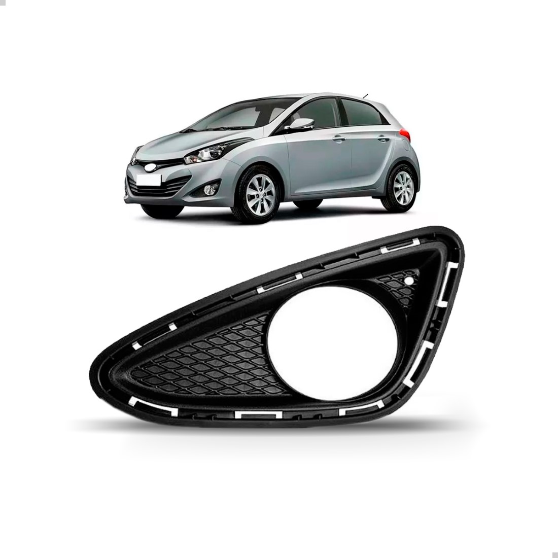 A MOLDURA MILHA HYUNDAI HB20 2012 2013 2014 2015 é feita em plástico de alta resistência. Garante um acabamento perfeito do parachoque e proteção ao farol de milha.