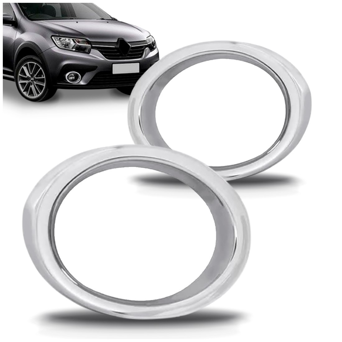 Par Aro Moldura Grade Milha Sandero E Logan 20 A 23 Cromado Cromado Ambos Os Lados