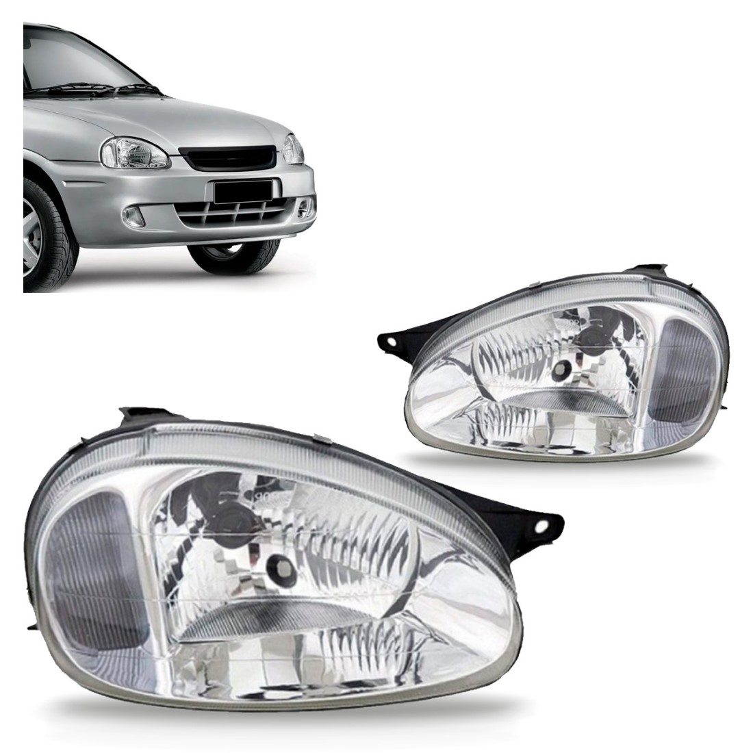 Par Farol Corsa 2000 A 2002 Carcaça Preta Lente Policarbonato