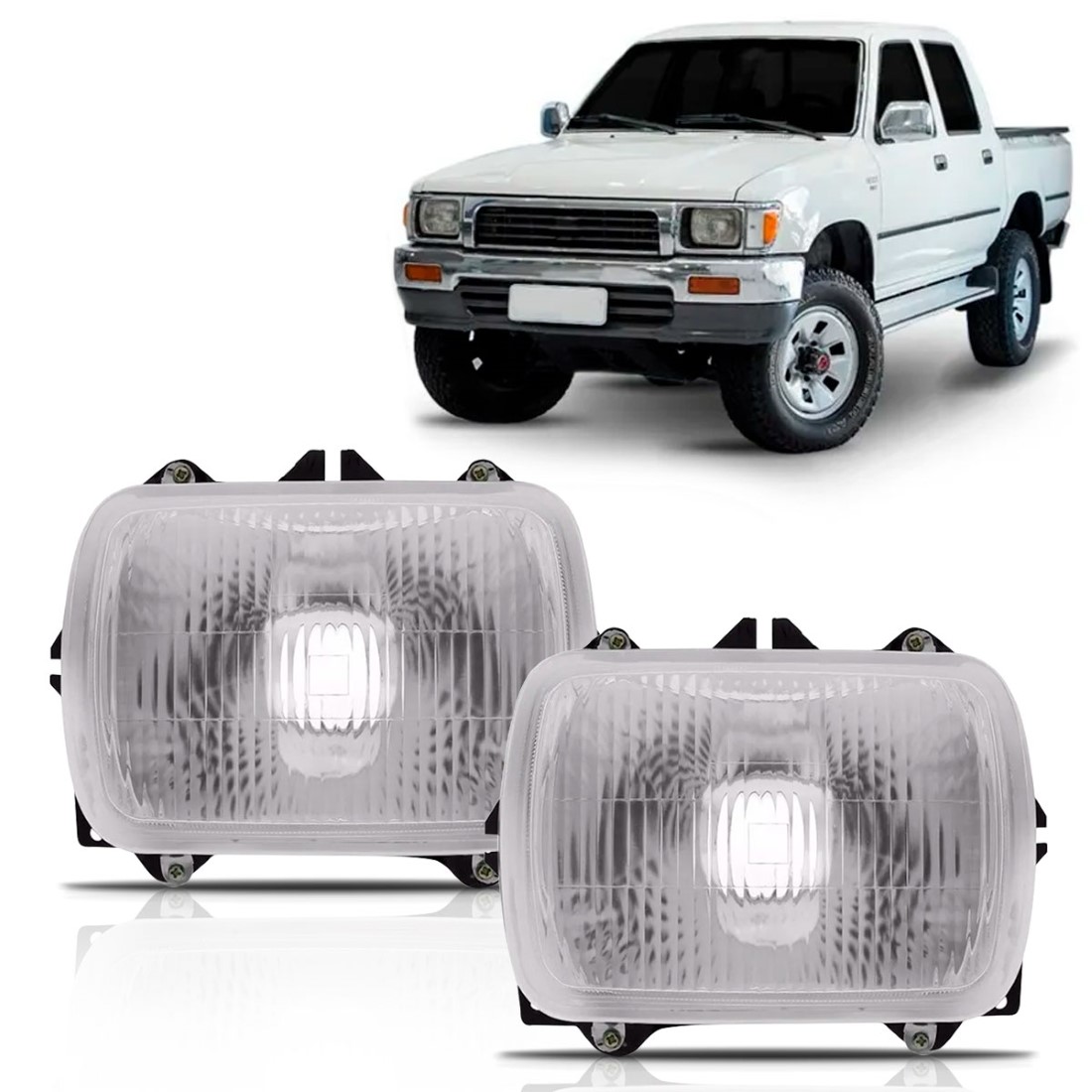 Farol de Milha Auxiliar Hilux L200 Quadrado 1990 1991 1992 1993 1994 1995 1996 1997 1998 1999 2000 2001 Com Suporte