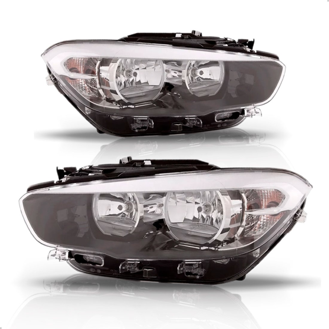 Farol para Bmw Serie 1 2016 a 2018 Elétrico Máscara Negra Com Led e Friso
