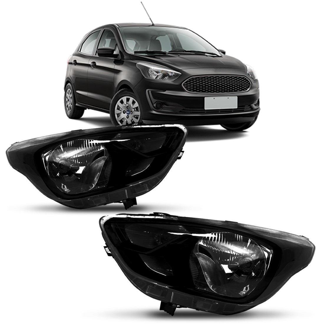Par Farol para Ford KA 2019 2020 2021 2022 Mascara Negra Manual