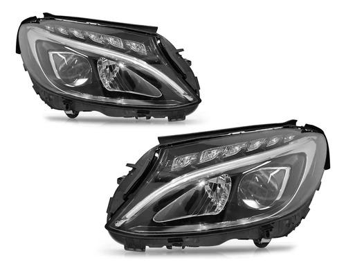 Par Farol Dianteiro Para Mercedes C180 2015 a 2018 Com Led Sem Reator