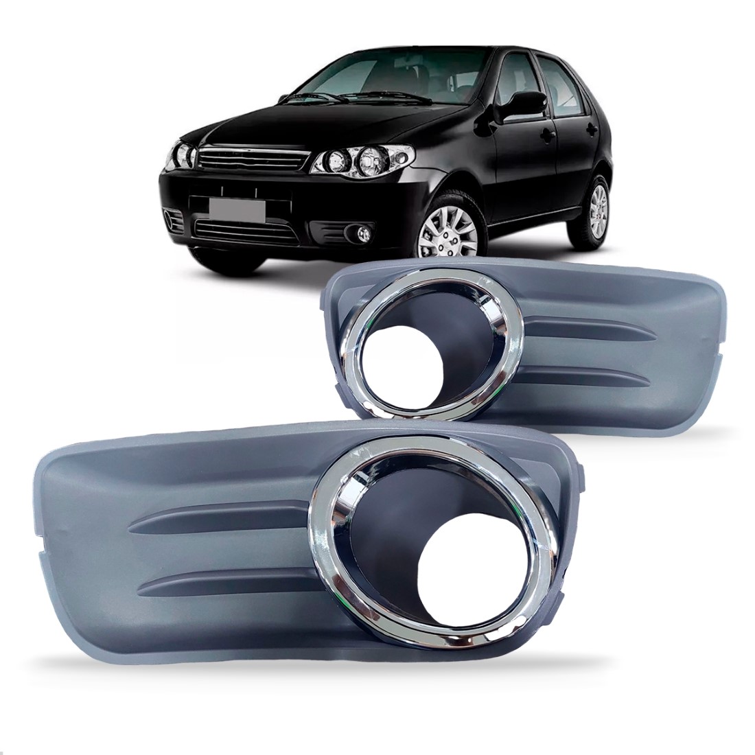 Par Moldura Milha Palio 2009 A 2015 Com Furo Com Aro Cromado