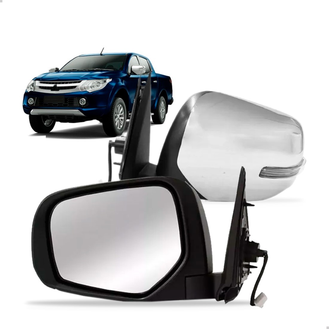 Retrovisor Externo Triton 2017 a 2019 Elétrico Retrátil Com Pisca 07 Fios Cromado