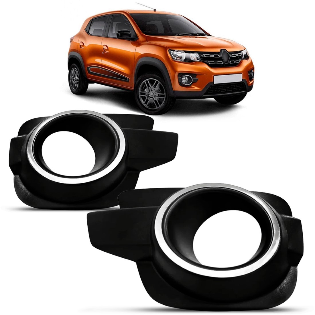 Moldura Farol Milha Kwid 2017 A 2022 Preto Com Furo Aro Cromado