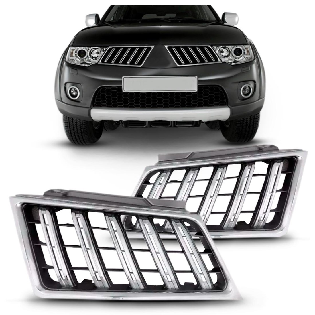 Par Grade Radiador Pajero Dakar 2009 a 2013 Cromado