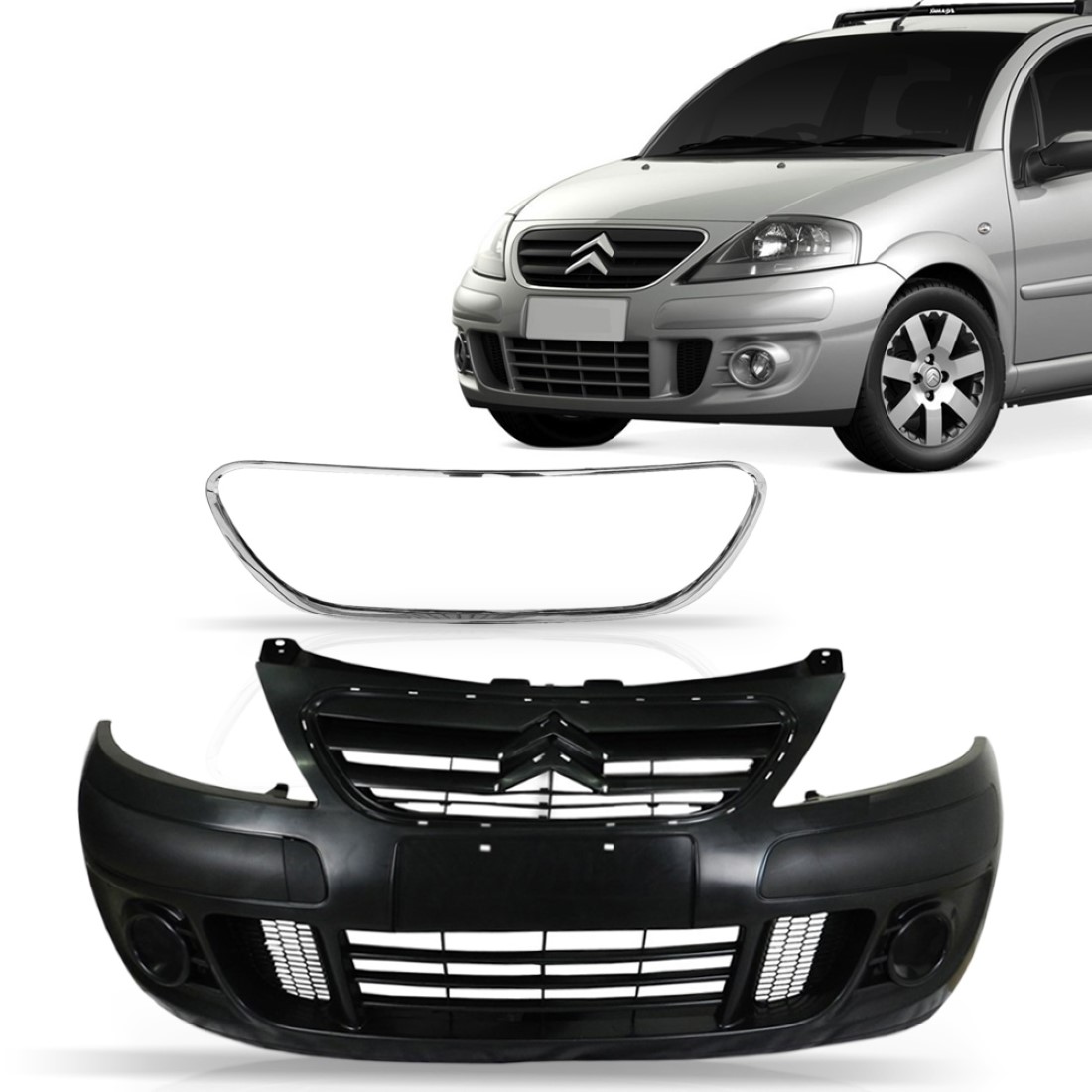 Parachoque C3 + Friso Cromado 2008 A 2012 S/ Furo Milha