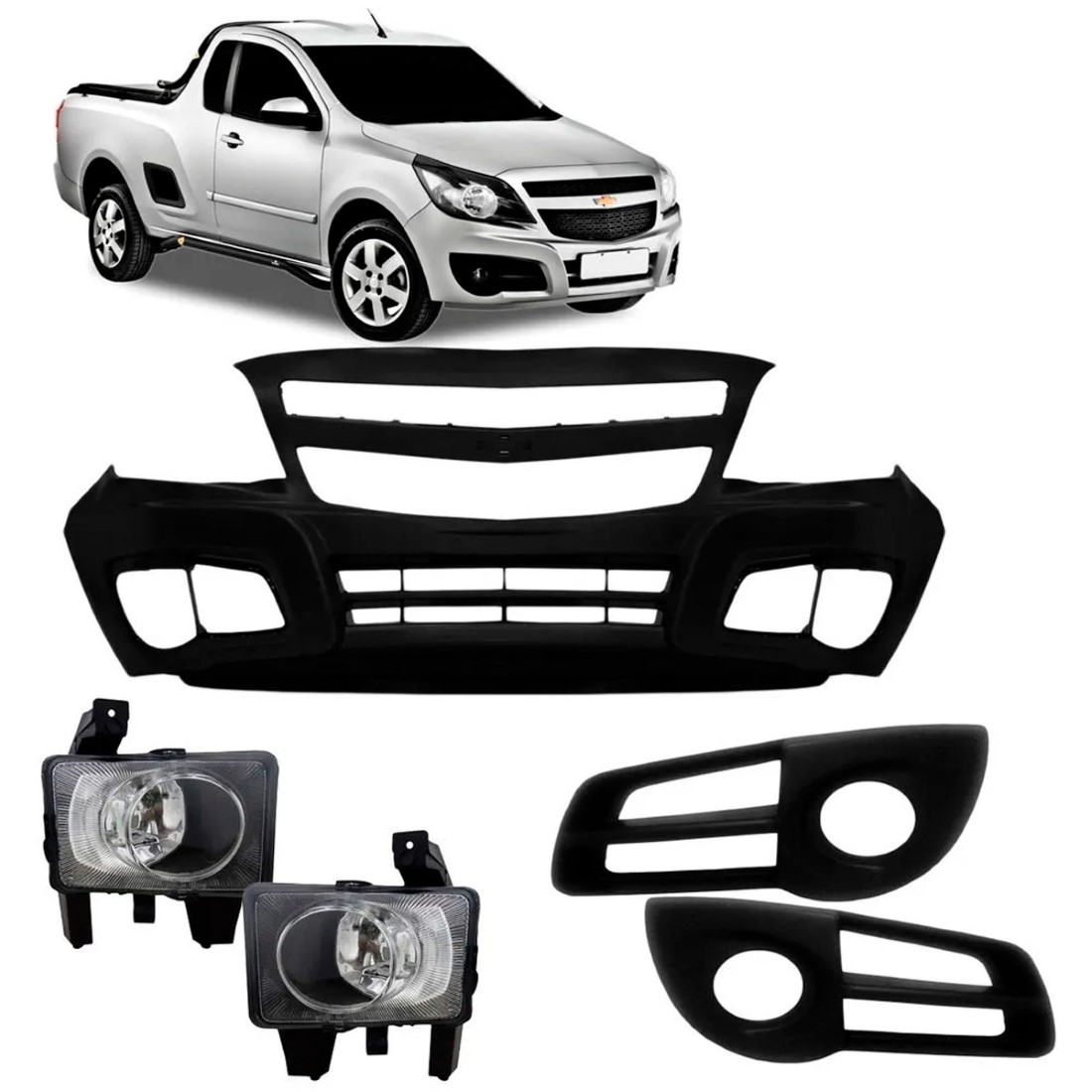 O Parachoque Dianteiro do Chevrolet Montana + Par Grade do Milha + Par de Milha 2012 2013 2014 2015 é fabricado com a mais alta tecnologia oferecida do mercado de Auto Peças. As paças do carro são fabricadas com os mesmos padrão das originais mantendo o alinhamento do carro e a originalidade, Aproveite para trocar as peças danificado ou em mau estado.
